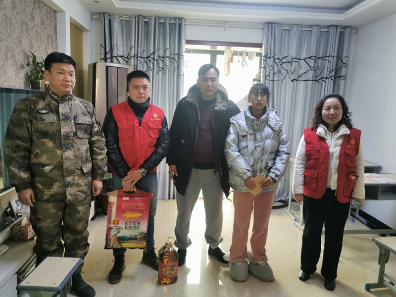 春節(jié)前夕,公司領(lǐng)導(dǎo)帶領(lǐng)青年黨員志愿者前往發(fā)能國(guó)際城社區(qū),慰問困難軍人家庭。
