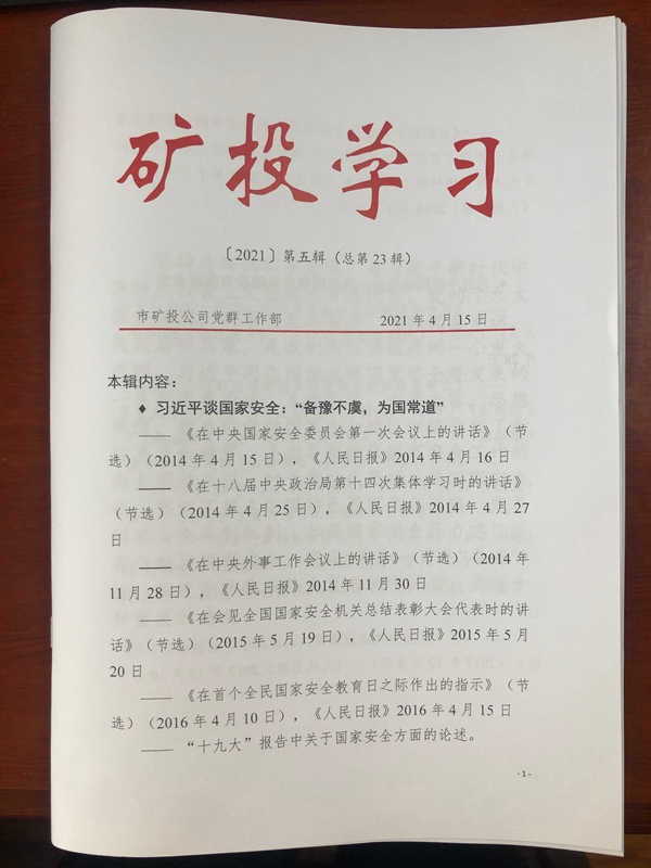 2021年4月15日是第六個(gè)全民國家安全教育日。為深入學(xué)習(xí)貫徹習(xí)近平總書記關(guān)于總體國家安全觀的重要論述精神,提高公司全體職工安全文明素養(yǎng),市礦投公司多渠道組織開展系列宣傳教育活動(dòng)。