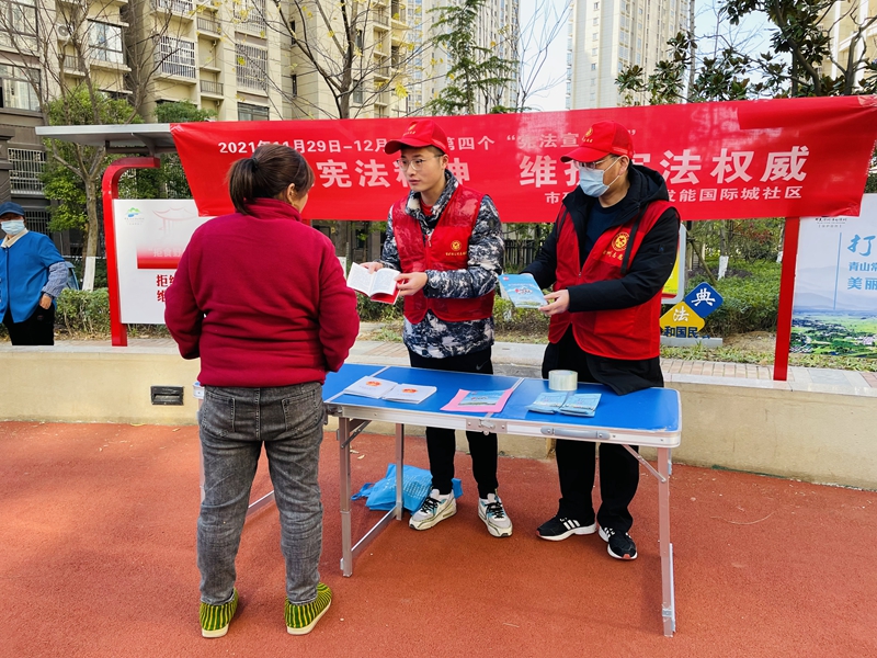 今年的憲法宣傳主題為“以習(xí)近平法治思想為指引,堅(jiān)定不移走中國(guó)特色社會(huì)主義法治道路”。在社區(qū)法治小廣場(chǎng),志愿者向居民發(fā)放憲法宣傳手冊(cè),講解國(guó)家憲法的由來、地位、主要內(nèi)容以及學(xué)習(xí)宣傳憲法的重要意義。